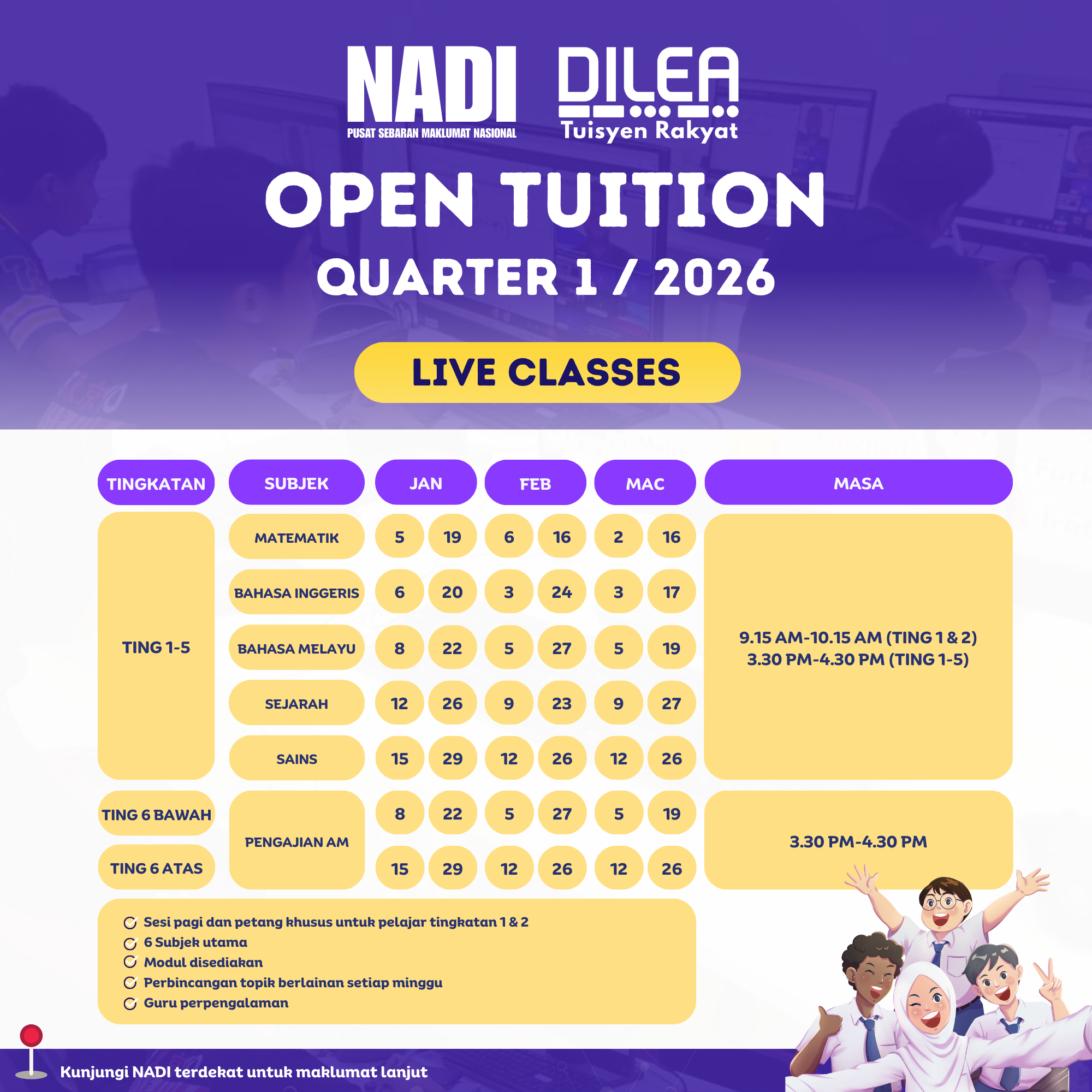 Program Perkhidmatan Pintar NADI-Nurture DiLea Kini Dibuka! ! Sukacita dimaklumkan permohonan untuk mengikuti Program Bimbingan Akademik iaitu Program NADI-Nurture DiLea telah dibuka dan permohonan terbuka kepada pelajar sekolah menengah Tingkatan 4/2024. Permohonan dibuka kepada 10 orang peserta dan hanya 2 […]