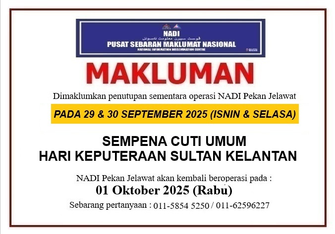 MAKLUMAN PENUTUPAN SEMENTARA OPERASI NADI PEKAN JELAWAT