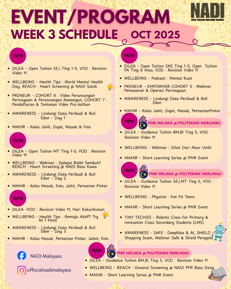 JADUAL PROGRAM MINGGU KETIGA OKTOBER 2025