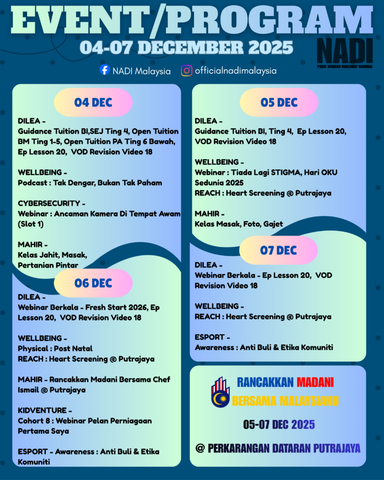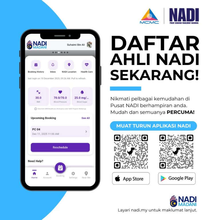 📱 Daftar Ahli NADI sekarang! Jom muat turun Aplikasi Ahli NADI sekarang di telefon anda!Gunakan aplikasi ini untuk:✔ Tempah penggunaan PC di NADI✔ Cari NADI terdekat✔ Kemas kini maklumat keahlian✔ Pantau rekod kesihatan✔ Terima makluman & pengumuman penting dari NADI […]