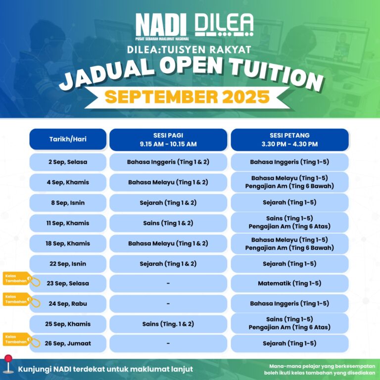 JADUAL OPEN TUITION DILEA SEPTEMBER 2025