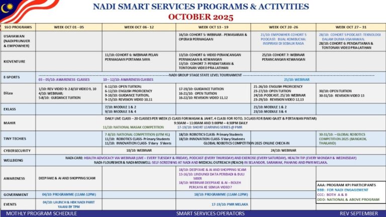 TAKWIM PERKHIDMATAN PINTAR NADI OKT 2025